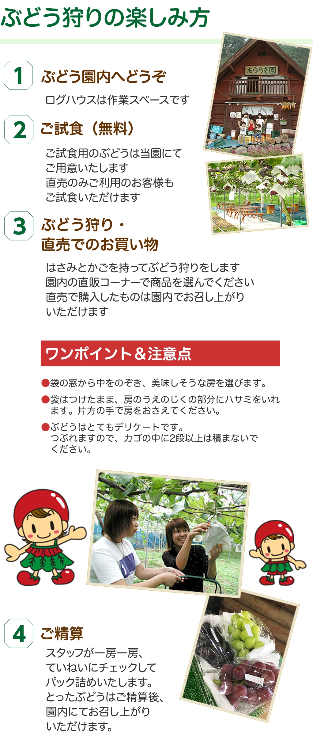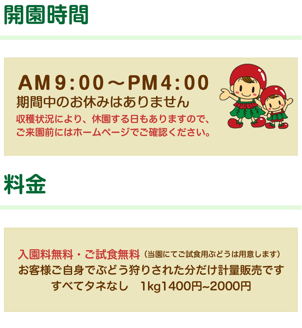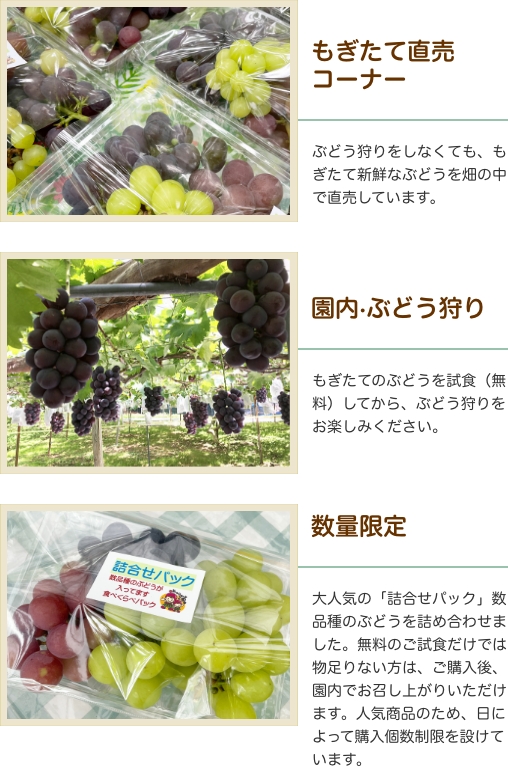 ●もぎたてのぶどうをパックに詰めて販売していますのでぶどう狩りをされなくても大丈夫です。